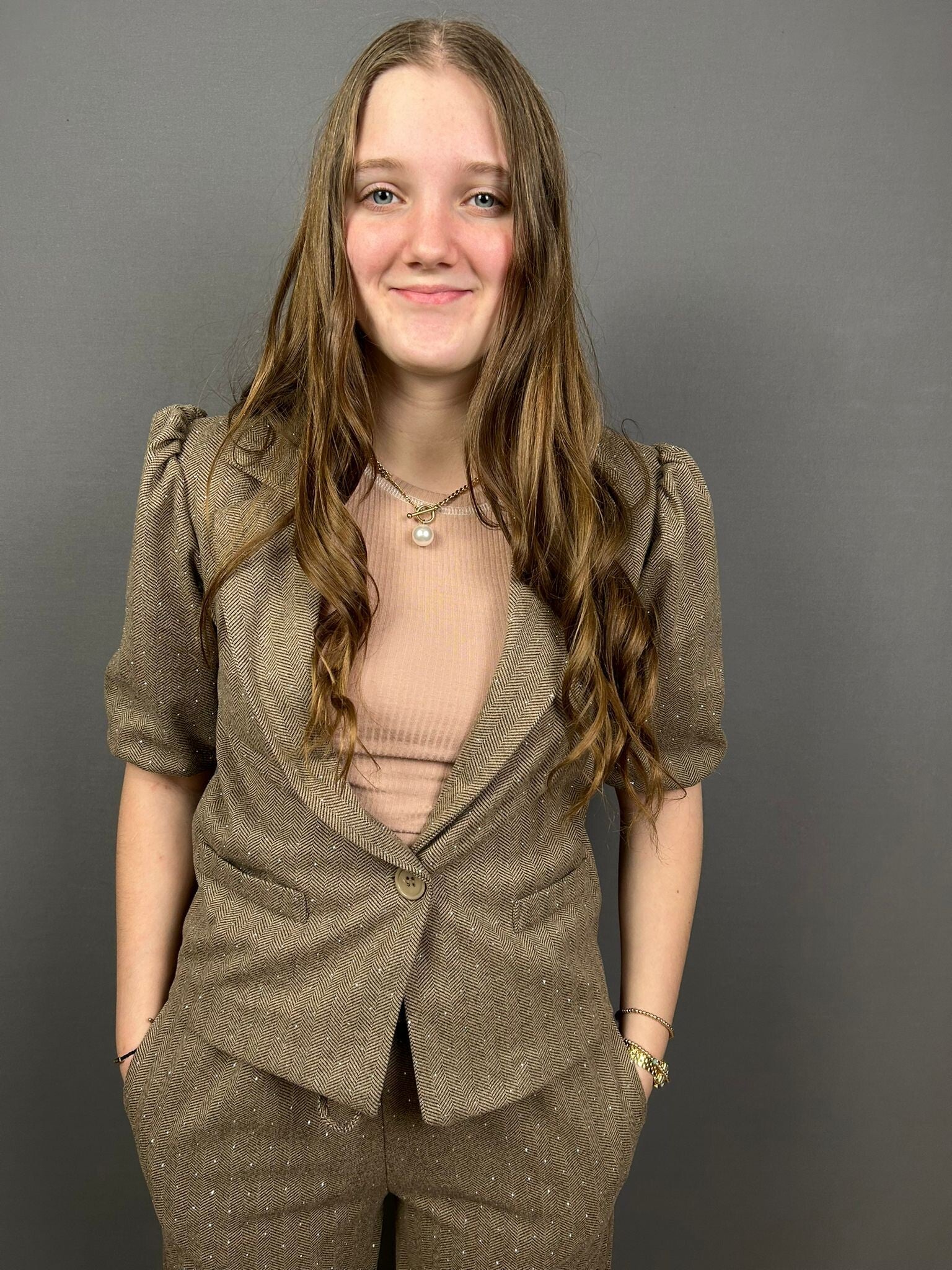 Deze glitter blazer voegt een vleugje glamour toe aan elke outfit. Gemaakt van hoogwaardige materialen met een sprankelende afwerking, perfect voor feestelijke gelegenheden of een avondje uit. Draag hem over een elegante top voor een moeiteloze, stijlvolle look.
