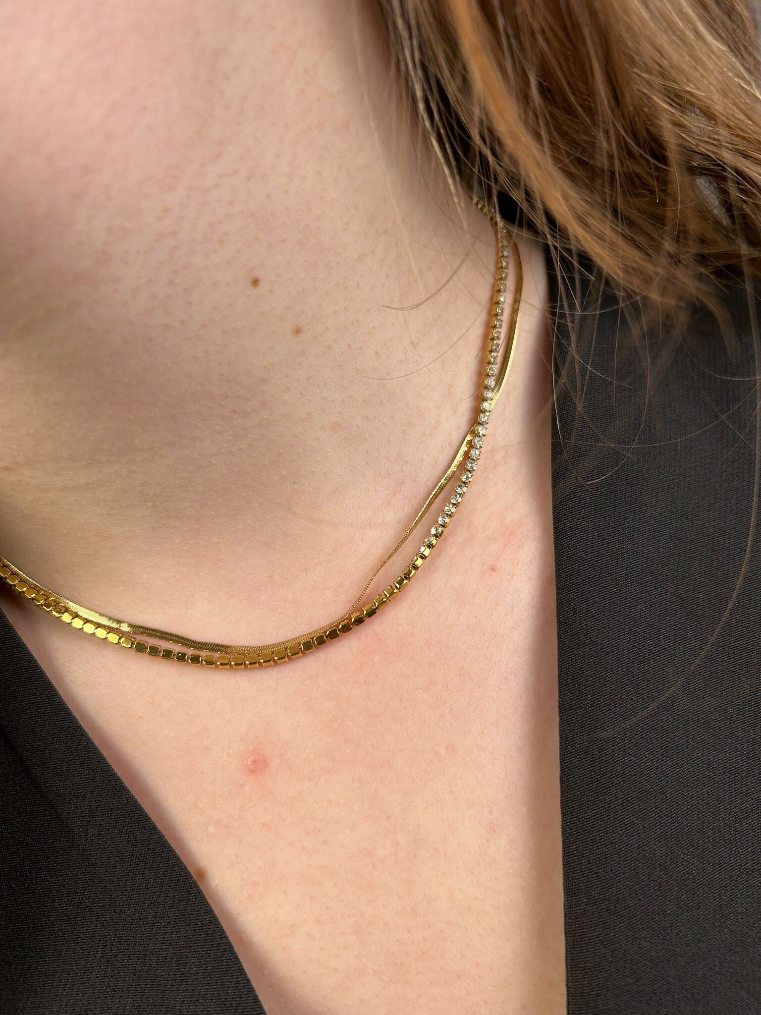 Dubbele ketting met snake en strass | Goud